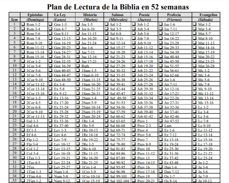Este plan consiste en leer la Biblia en orden cronológico, siguiendo el desarrollo histórico de los eventos bíblicos. Es ideal para aquellos que desean comprender el contexto histórico y la progresión de la revelación de Dios.